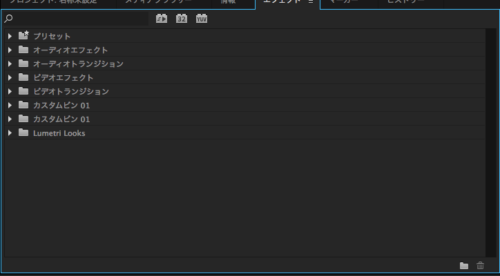 左下のプロジェクトタブの並びに、エフェクトがあるのが確認ができるかと思います。